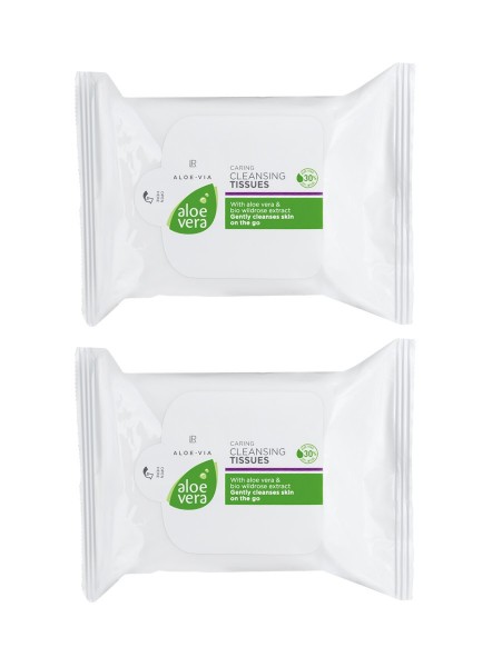 Die LR ALOE VIA Aloe Vera Pflegende Reinigungstücher mit 30 % Aloe Vera reinigen Gesicht und Augenpartie auf sanfte Weise. Das seidige Soft-Vlies und die pflegende Formel verwöhnen die Haut bei der einfachen Reinigung. Besonders auf Reisen und unterwegs sind die praktischen Reinigungstücher einfach unverzichtbar. Die sanfte Lotion enthält keinen Alkohol und trocknet die Haut nicht aus. Aloe Vera sorgt für ein wunderbar reines und klares Hautbild.